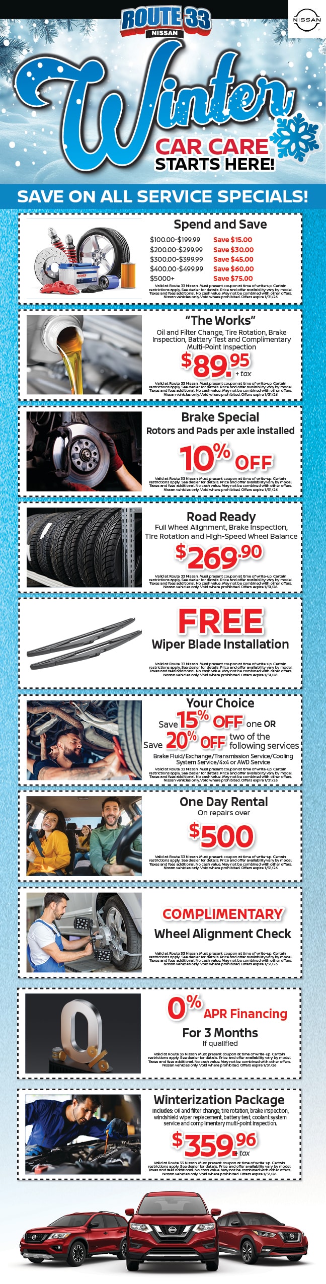 Expires January 31, 2026. Limit one coupon per customer. Coupon cannot be combined with other discounts, incentives, or internet pricing. Certain vehicle exclusions apply, see dealer. Cannot be applied towards prior purchases. Must print and present coupon prior to write up in order to qualify.